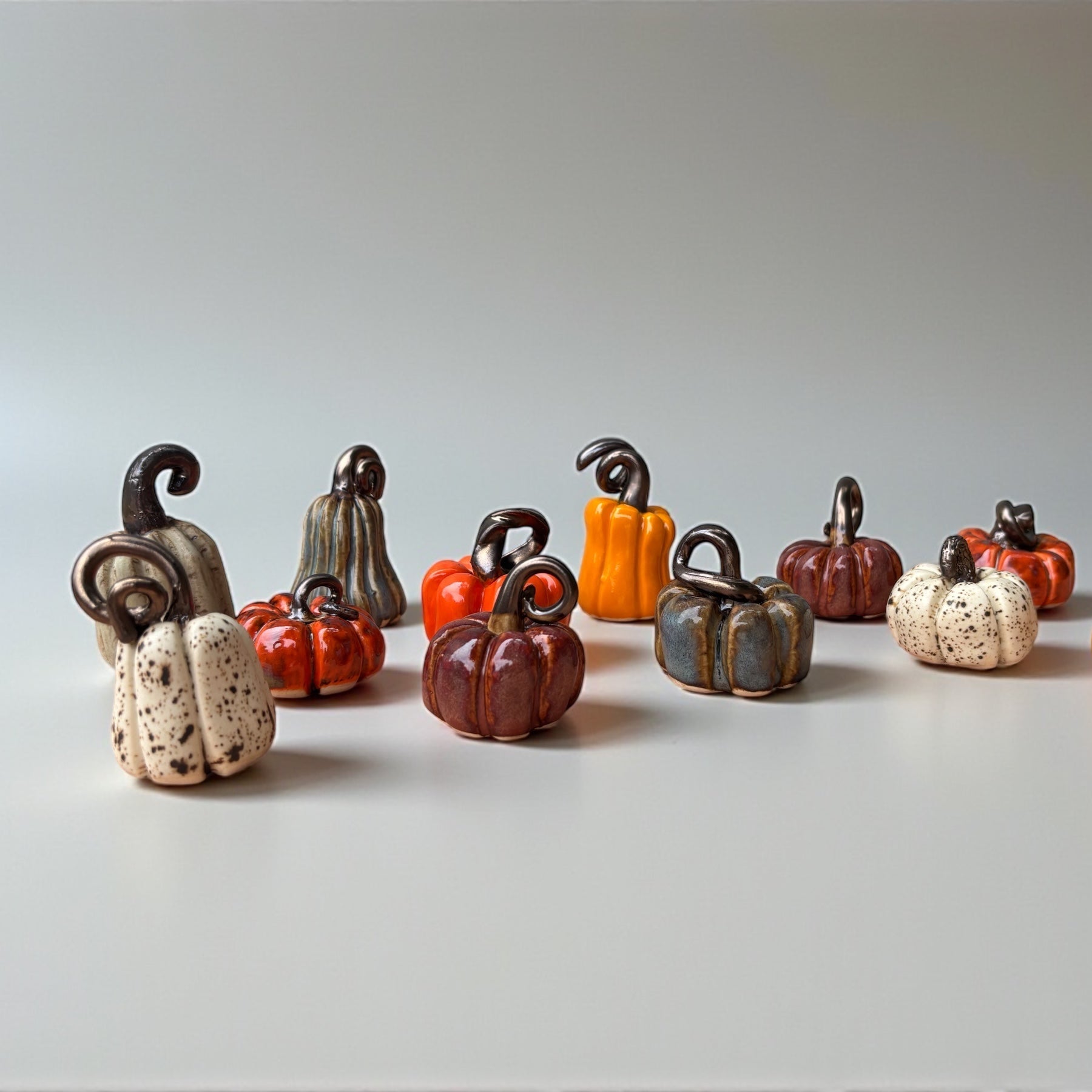 Bring the warmth of autumn into your home with these elegant, handmade ceramic mini pumpkins. Each piece is uniquely glazed with rich seasonal tones, making them perfect for decorating tables or shelves. A perfect gift for the friend who loves decorating for fall with an excessive amount of pumpkins.