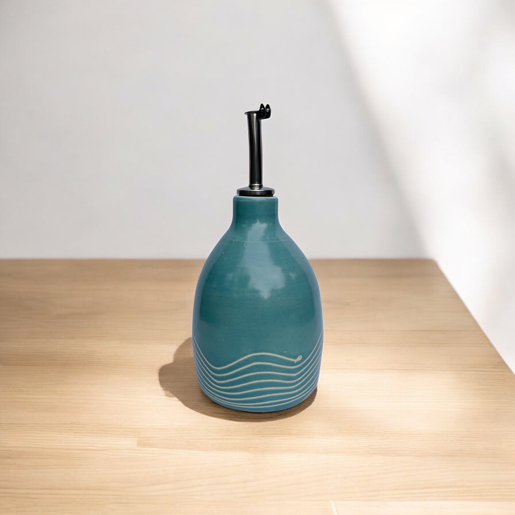 Elevate your kitchen with these handcrafted ceramic olive oil cruets, designed to be both functional and beautiful. Each piece is wheel-thrown and fitted with a high-quality pour spout for a smooth, controlled drizzle. Available in Small, Medium, or Large, these artisan vessels are perfect for olive oil, vinegar, or specialty dressings.